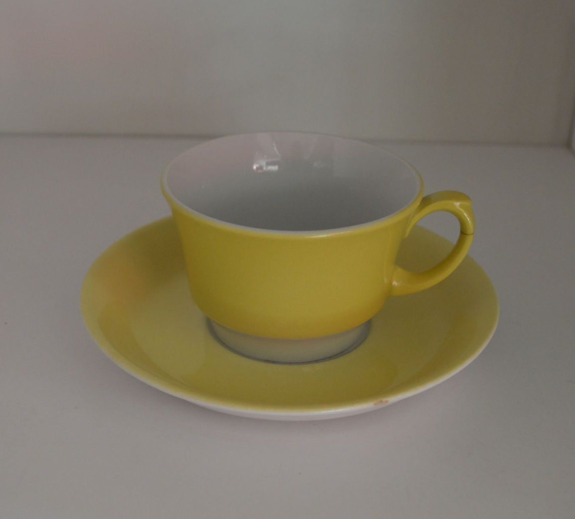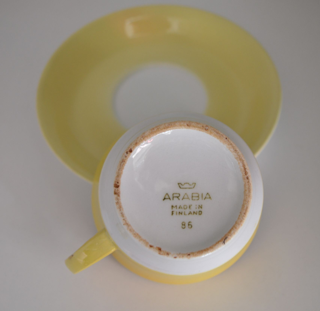 Arabia kahvikuppi + asetti, keltainen