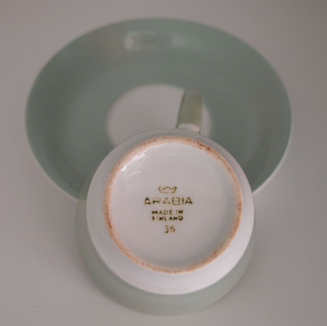 Arabia kahvikuppi + asetti, vihreä